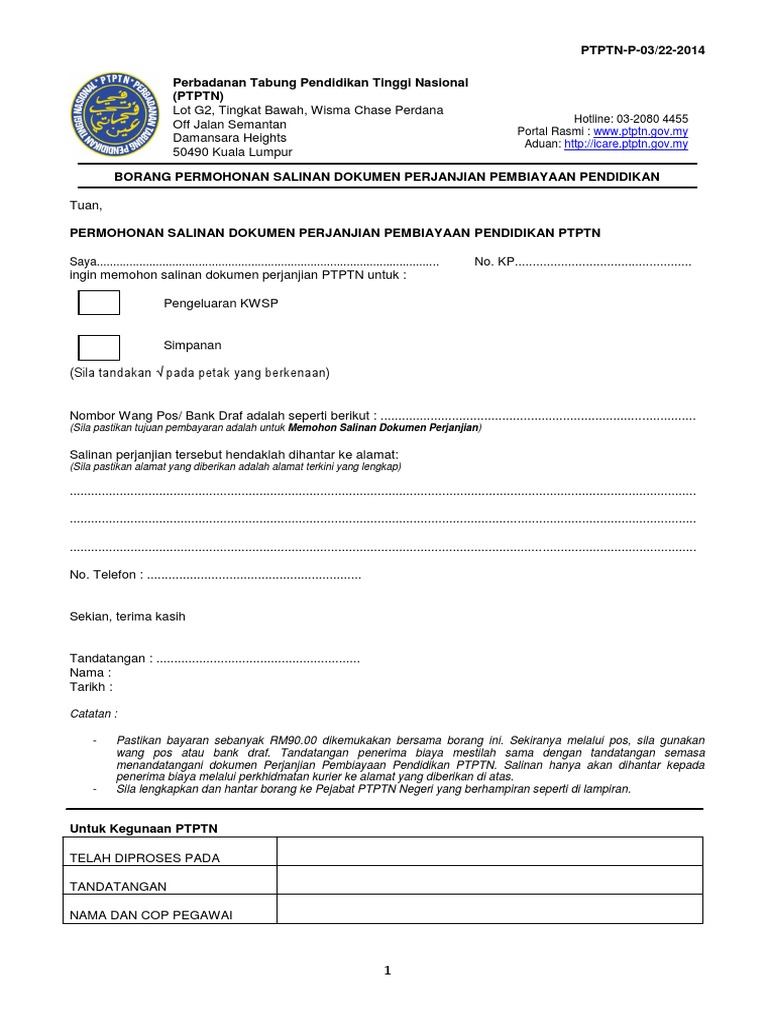 Borang Permohonan Salinan Dokumen Perjanjian Pembiayaan Pendidikan Pdf Pdf